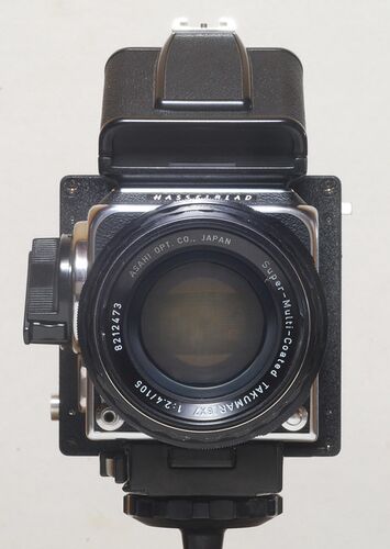ペンタ67レンズを装着して正面から見る。 久しぶりに工作の話題です。私は以前から大口径のハッセルプラナー110mm f2が欲しかったのですが、たいへん高価でなかなか入手は叶いません。そこで、手持ちのレンズを見回してみると、ペンタ67用の105mm f2.4があ…